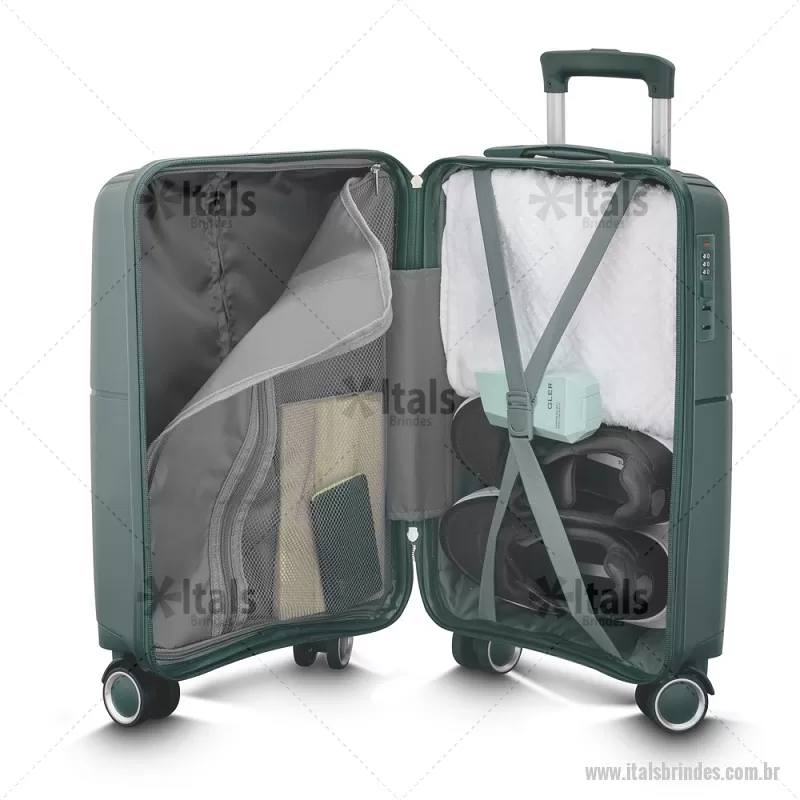 Mala viagem pequena em Polipropileno Abertura com zíper para acesso ao interior da mala. Forro poliéster; Sistema de carrinho de aço; Cadeado com senha; Alça de mão na parte superior; Quatro rodas de 360 graus; Acompanha 2 plaquinhas em inox para personalização. Dimensão Produto: 49x33x21cm (s/rodas) Dimensão Produto: 53x33x21cm (c/rodas) Peso do Produto: 2,7kg - - ITAMC226