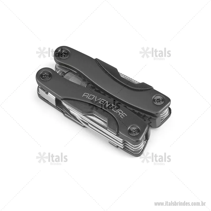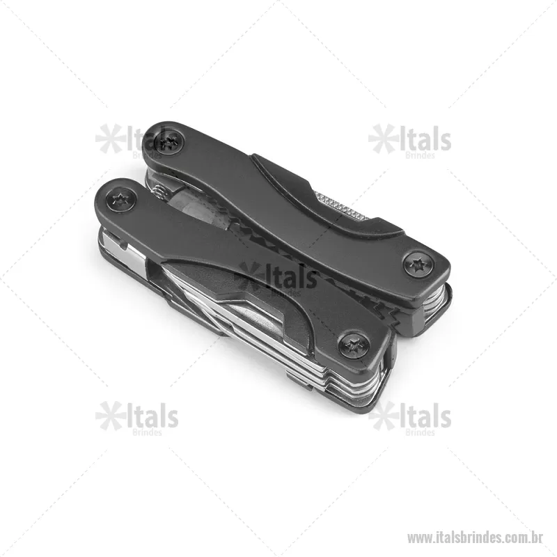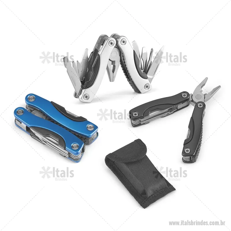 Mini alicate multifunções dobrável em aço inox e alumínio com 9 funções Incluso 9 funções: alicate, lâmina de serra, 2 abridores, parafuso com a cabeça cruzada, faca, chave de fendas de cabeça plana (grande e pequena) e lima de unhas. Fornecido em bolsa de 600D. Fechado: 35 x 70 x 18 mm | Bolsa: 50 x 90 x 20 mm Peso do Produto (g.): 92 - - ITACVT029