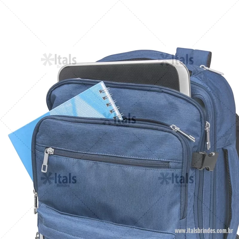 Mochila Poliéster 24L Mochila em poliéster impermeável com capacidade para até 24 litros. Possui compartimento interno principal com dois bolsos de fechamento em zíper e cinta compressora para roupas. Conta ainda com dois compartimentos frontais, sendo um deles com divisória para notebooks de até 15,6 polegadas, um par de bolsos menores com fechamento em zíper e um bolso lateral em tela de nylon. Dispõe também uma alça retrátil contida em um compartimento fechado em zíper e duas rodinhas para oferecer mais uma possibilidade de uso, além de duas alças de mão, uma na parte superior e outra na lateral, permitindo o transporte pela horizontal, e duas alças para as costas com revestimento em tecido acolchoado. Altura : 45 cm x Largura : 31 cm x Profundidade : 16 cm Peso aproximado (g): 2409 - - ITAMC241