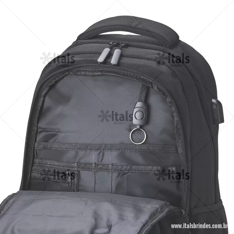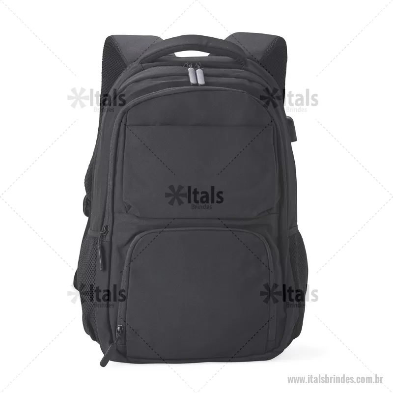 Mochila de Poliéster USB 28 litros com seis compartimentos, sendo o principal com bolso para notebook 15,6 e tablet 12,4. Com divisórias internas para acessórios e porta chave, a mochila possui adaptador USB externo, bolsos laterais telados, duas alças de mãos, área costada e alças para as costas com revestimento espumado. Altura : 43 cm x Largura : 31 cm x Profundidade : 15,5 cm Peso aproximado (g): 786 - - ITAMC248