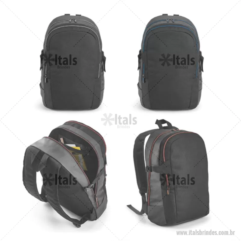 Mochila para notebook. 900D e c. sintético. Com 2 compartimentos. Compartimento posterior forrado, com divisória almofadada para notebook até 17'' e bolso em tela, com zíper. Compartimento frontal forrado, com diversos bolsos interiores. Parte posterior e alças almofadadas. Ótima opção de brinde personalizado para ações promocionais e eventos corporativos. - - ITAMC085