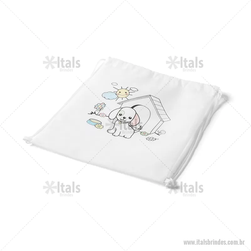 Sacola tipo mochila para colorir em non-woven (80 g/m²) com desenho impresso e bolso interior. 6 gizes de cera inclusos. - - ITAKIDS026
