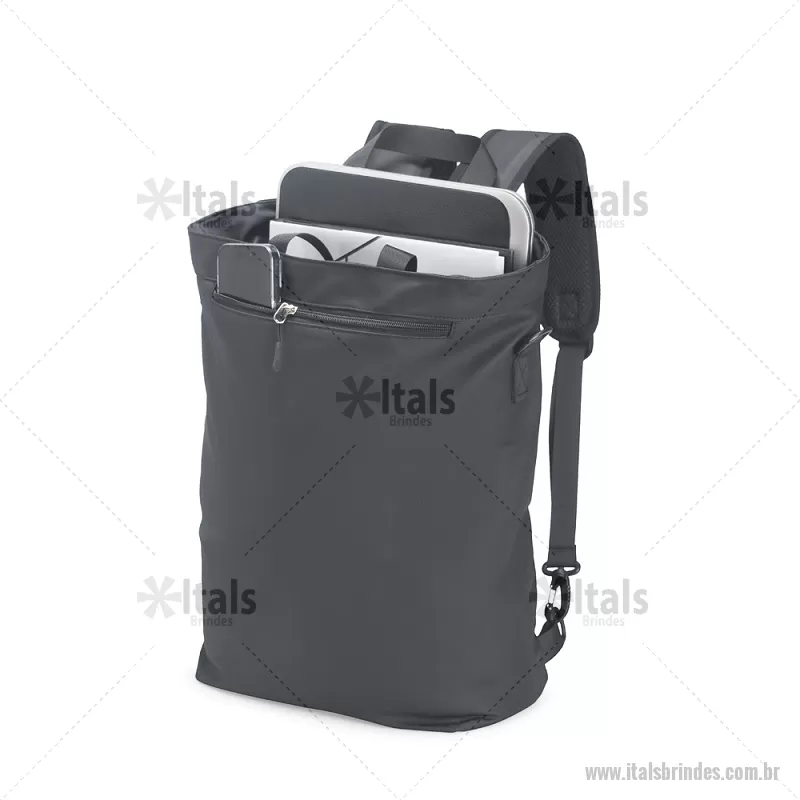 Mochila em PU resistente à água com capacidade de 26 litros e design versátil, permitindo uso em três formatos. Possui três compartimentos: frontal, traseiro multifuncional (que acomoda as alças ou funciona como bolso extra) e compartimento principal amplo com bolso interno em zíper. Conta com alças de mão, alças para uso como mochila e alça transversal removível, unindo praticidade, organização e estilo para o dia a dia ou viagens. - - ITAMC252