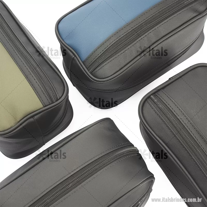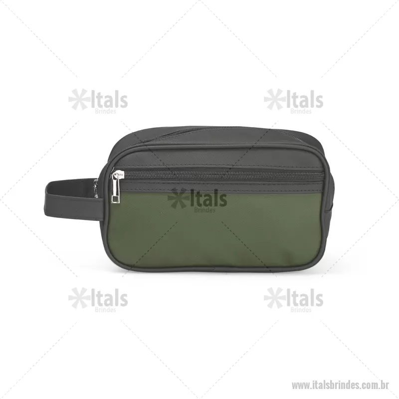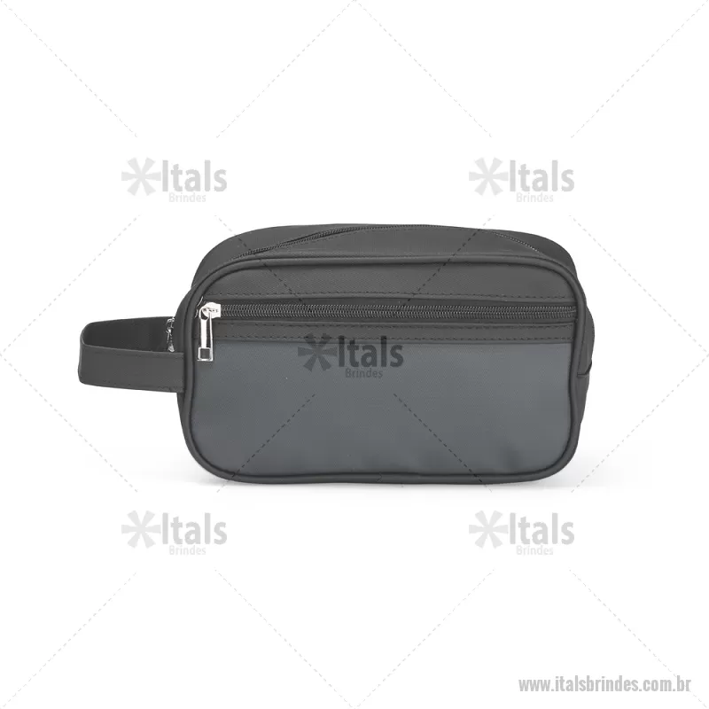 Nécessaire em couro sintético impermeável com fechamento em zíper. Possui bolso frontal também com zíper e alça lateral de mão. Altura : 14 cm x Largura : 24 cm x Profundidade : 9,5 cm Peso aproximado (g): 173 - - ITANC154
