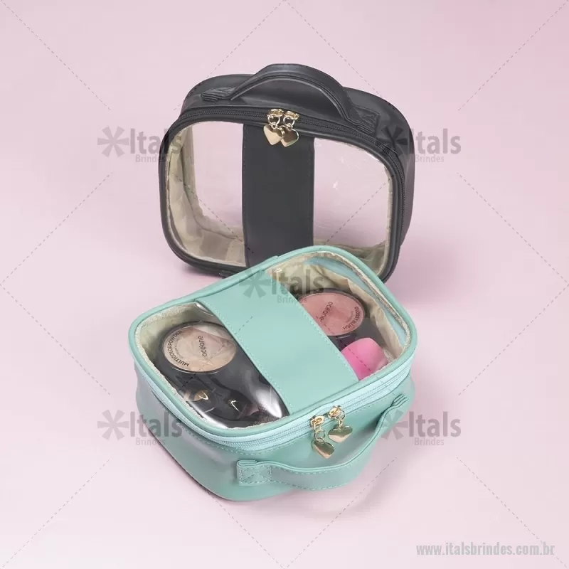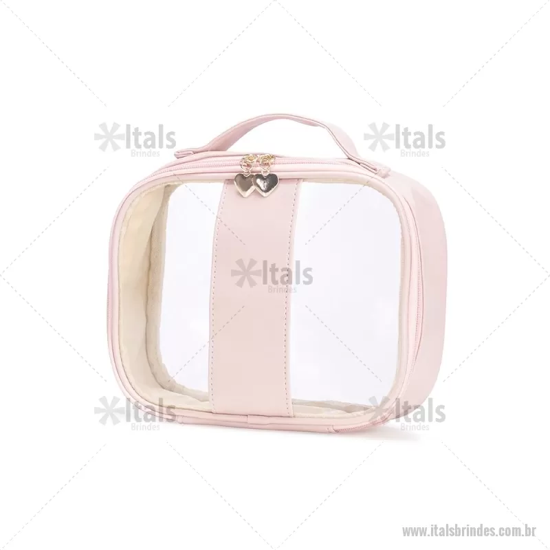 Necessaire impermeável de PVC e PU tamanho P, parte interna com revestimento em tecido, possui alça superior para as mãos, e detalhe dourado em formato de coração no zíper. Medidas nécessaire: 17 cm x 20,5 cm x 7,2 cm Peso aproximado (g): 134 - - ITANC100