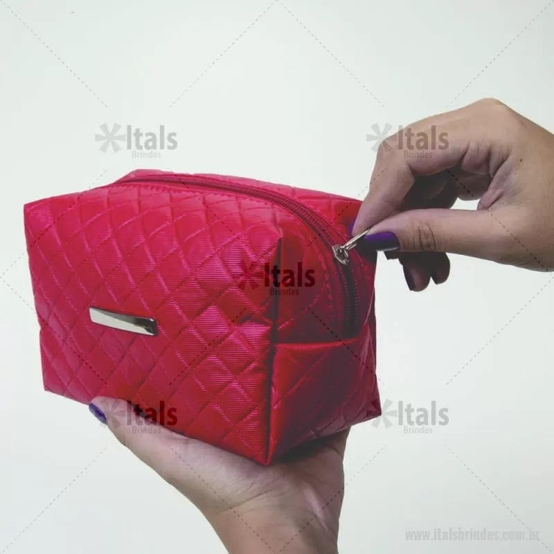 Necessaire puff matelassê, material em couro sintético. Possui uma plaqueta prata no centro para gravação. - - ITANC075