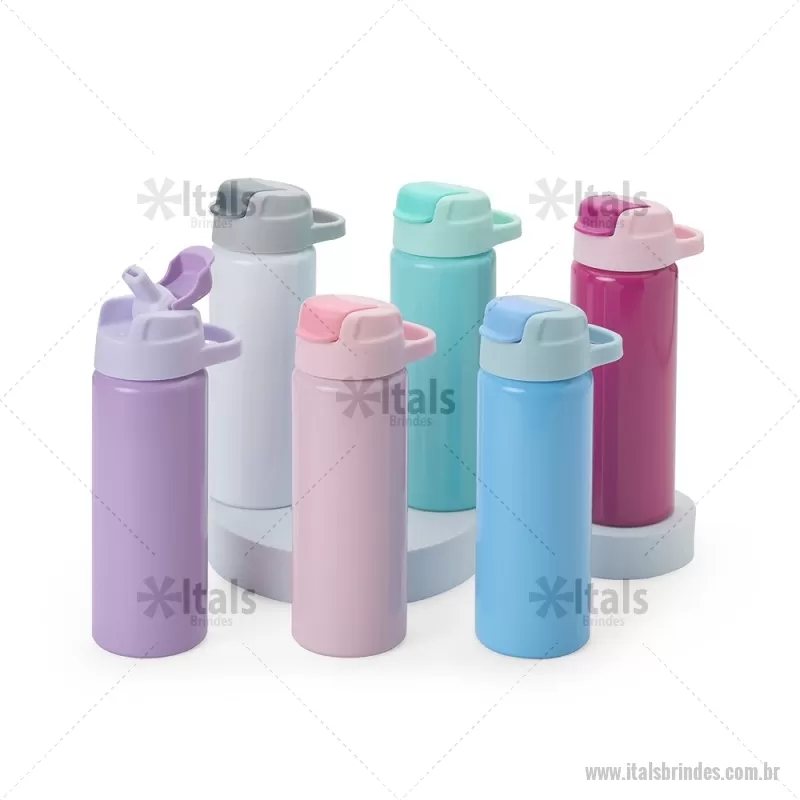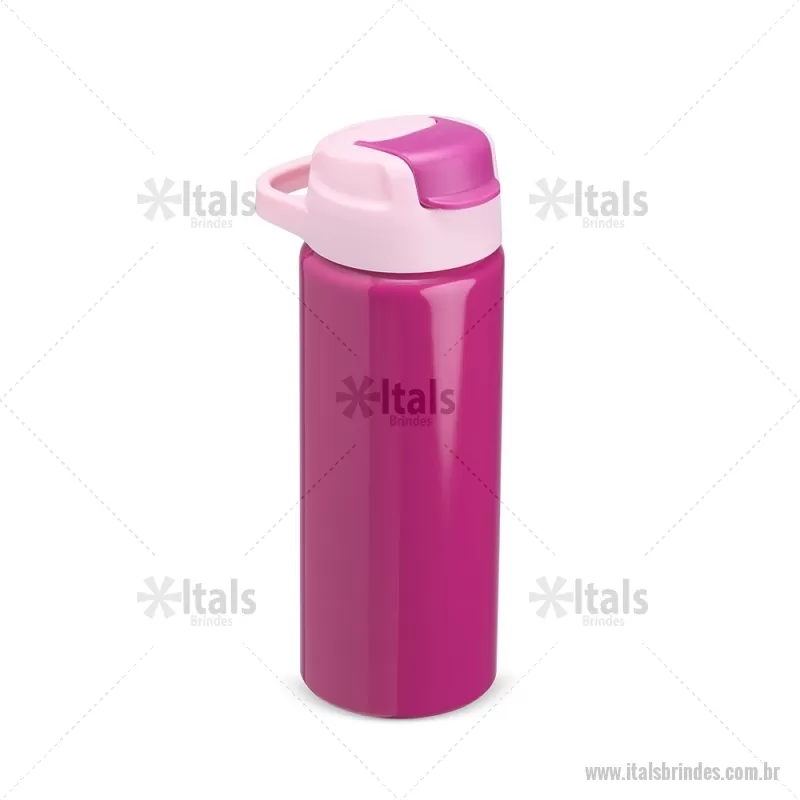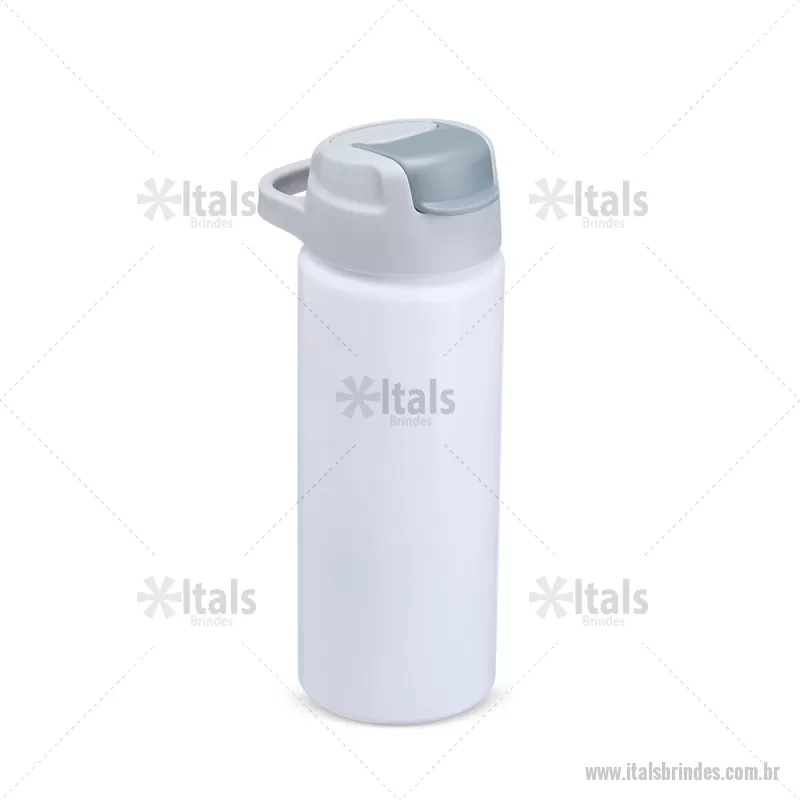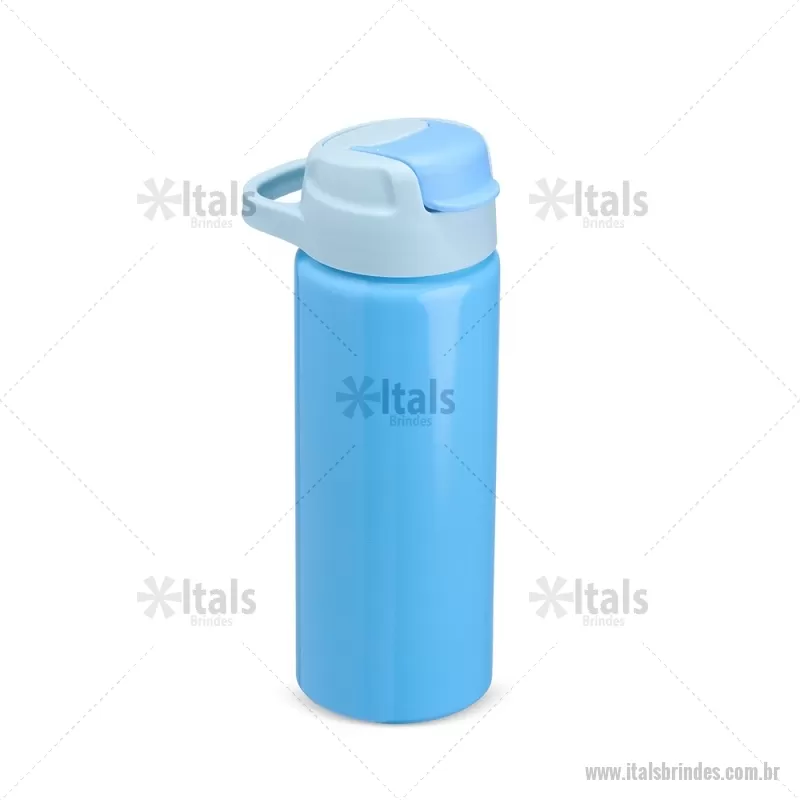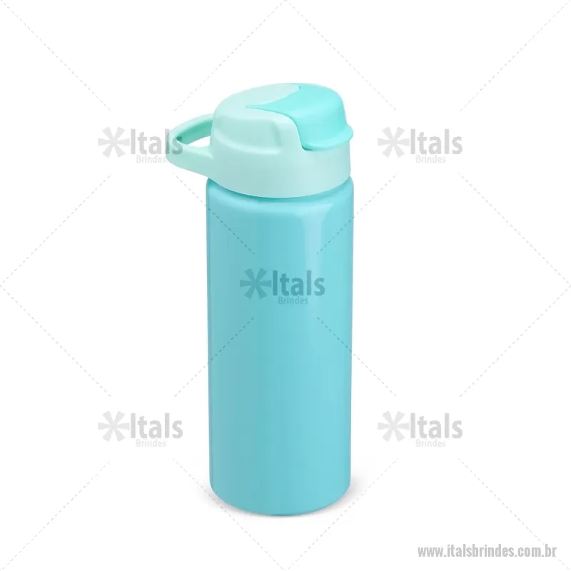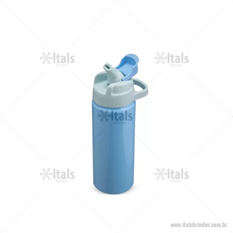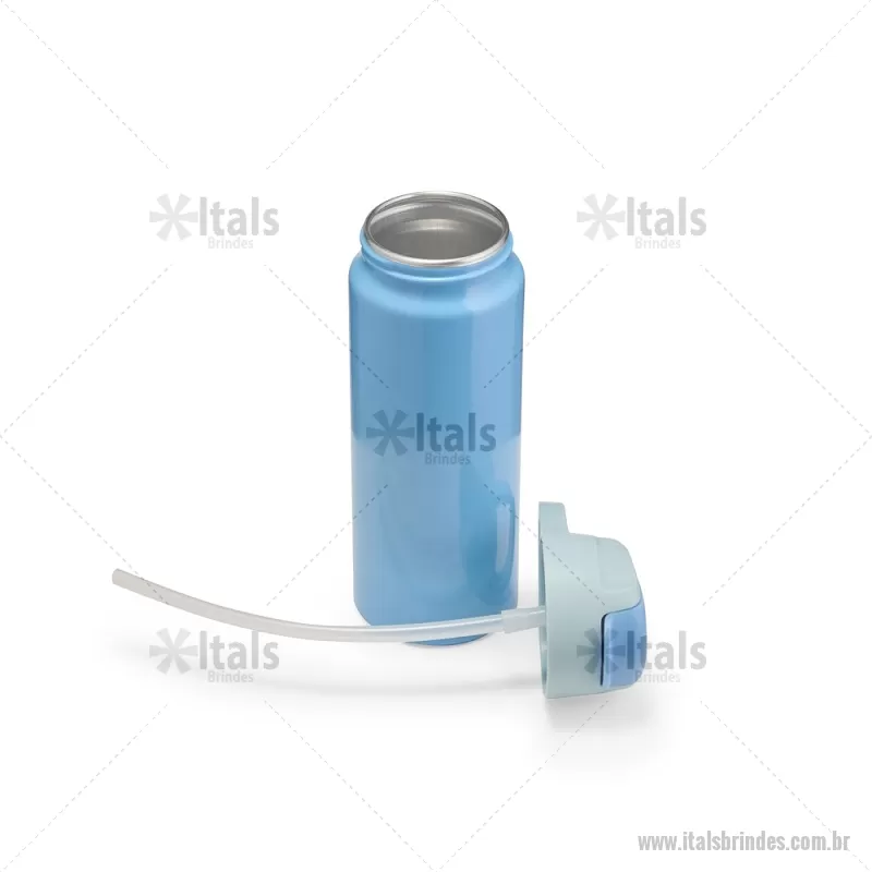 Squeeze de alumínio com capacidade máxima de 600ml. Possui tampa rosqueável em plástico com alça para transporte, protetor de bocal, bico flip top e canudo interno em plástico. Altura : 20,5 cm x Largura : 7 cm x Circunferência : 22 cm Peso aproximado (g): 117 - - ITASQM087