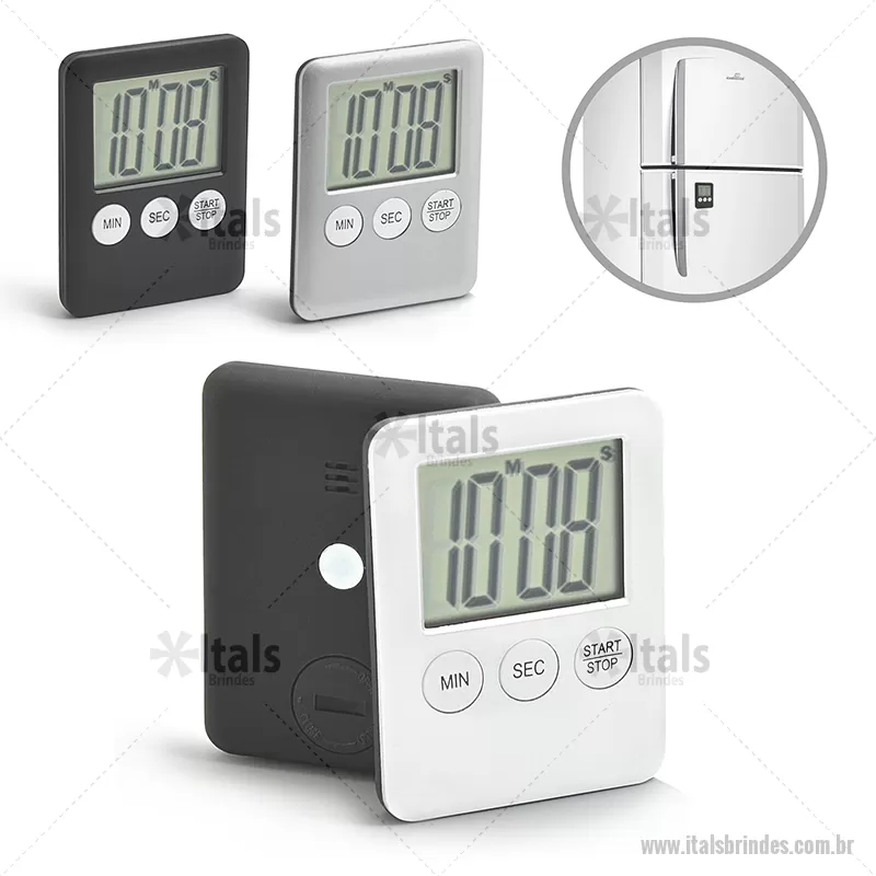Timer personalizado com contagem regressiva programável de até 99:59. Fabricado com plástico resistente, possui ímã no verso que o conecta facilmente a qualquer superfície magneticamente. Disponível nas cores: preto, branco ou prata. - - ITATEC085