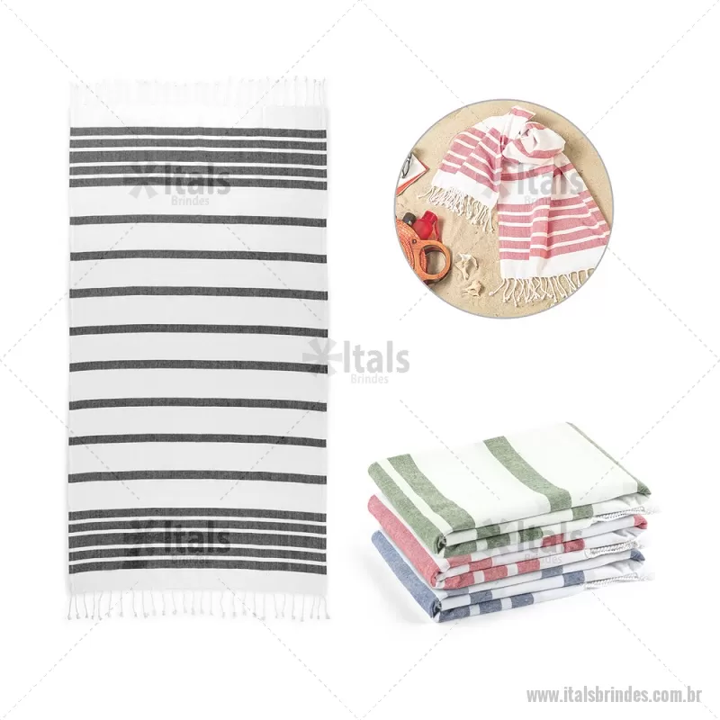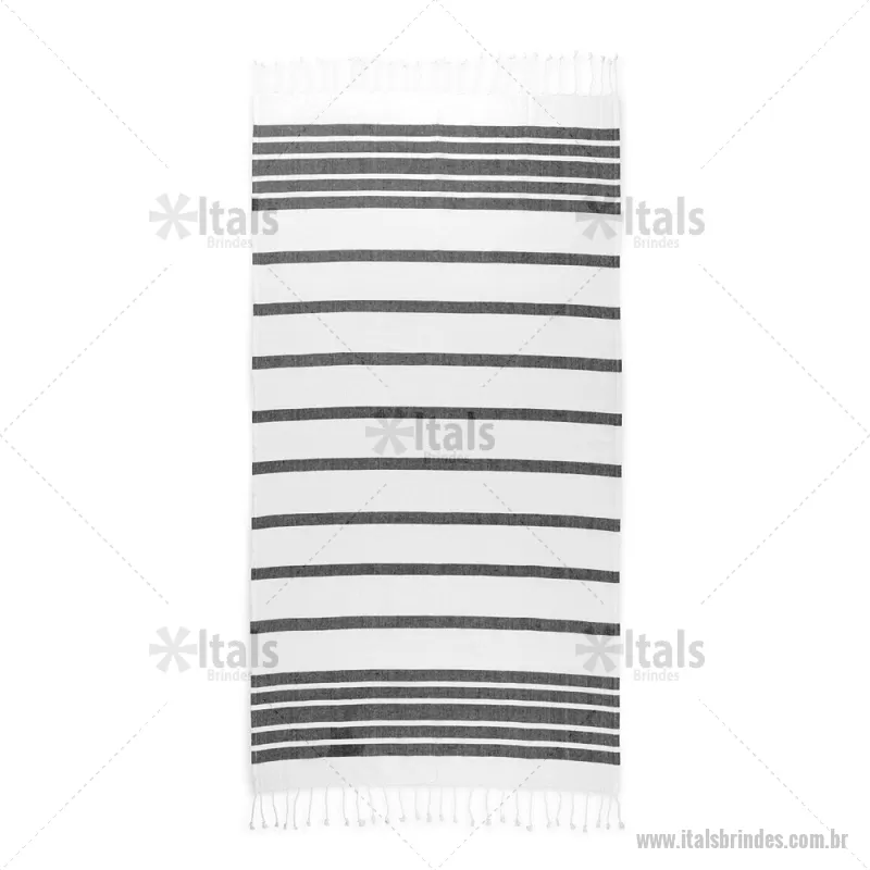 Toalha de praia em algodão (70% reciclado) e poliéster (30% reciclado) (180 g/m²) Toalha de praia em algodão 70% reciclado e poliéster 30% reciclado (180 g/m²), com um design minimalista e elegante para os seus dias de praia. Medidas : 900 x 1700 mm Peso do Produto (g.): 315 - - ITATO026
